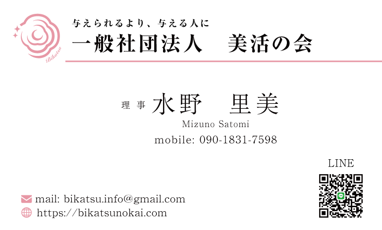 このたびご縁をいただき、「一般社団法人 美活の会」の理事に就任いたしました。